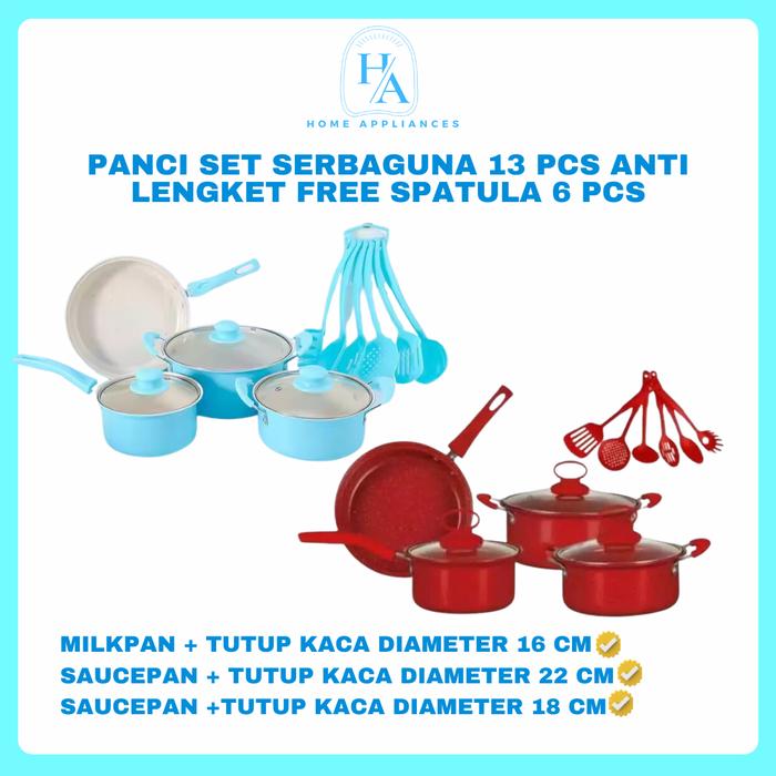 Promo HA Panci Teflon Set 13pcs Cookware Set Anti Lengket Panci Set Warna 13pcs - Random Elegan