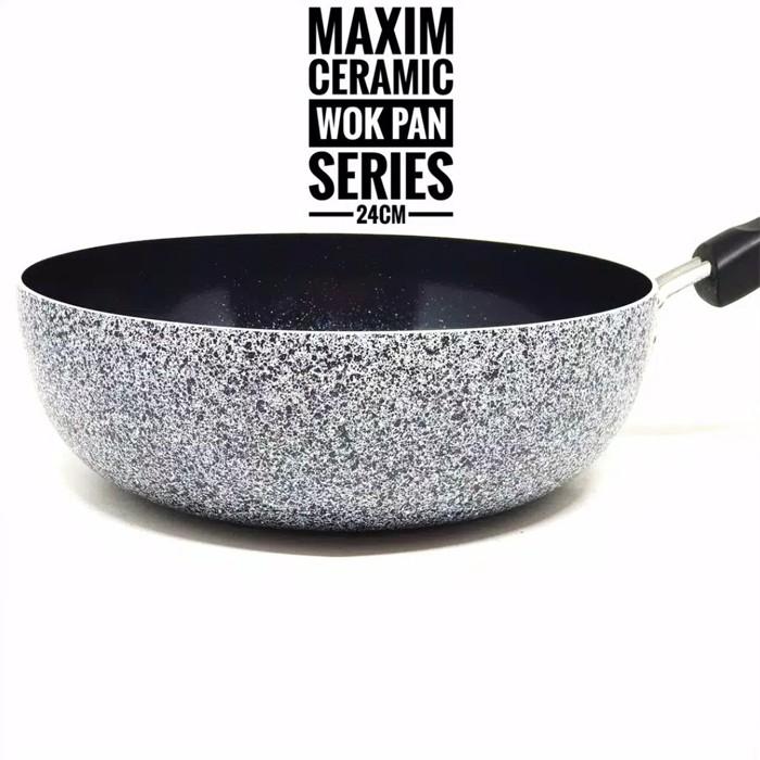 Murah Maxim Neostone Deep Wok Marble Ceramic Wajan Penggorengan 24 Cm - Deep wok Elegan