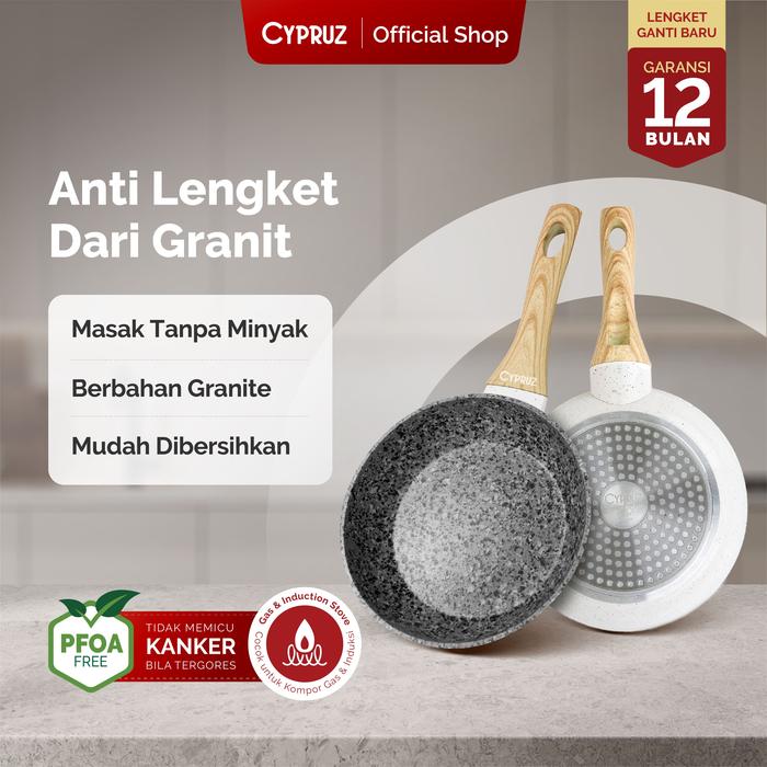 Terlaris [SPECIAL LIVE] Cypruz White Granite Fry Pan Wajan Tebal Anti Lengket - 20CM Elegan