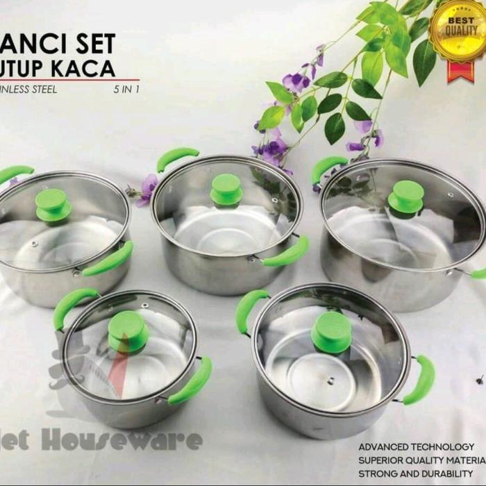 Murah Panci set tutup kaca 10pcs - panci plus sarang Keren