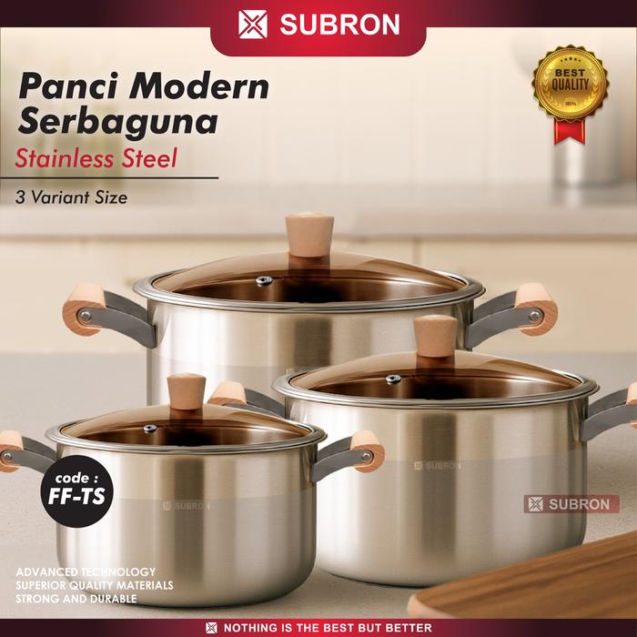 Murah Panci Sup Soup Pot GG KAYU 22/ 24/26/28 CM Stainless TEBAL PREMIUM Tutup Kaca - 22CM NORMAL Elegan