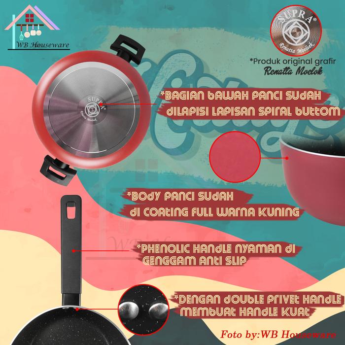 Promo NEW SUPRA Panci set 9pcs renatta retro merah anti lengket / cookware set teflon - Merah Keren