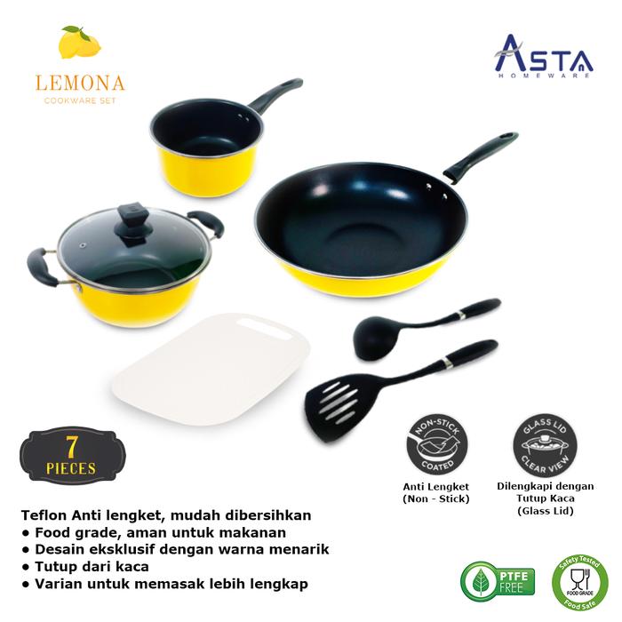 Promo Asta Panci Anti Lengket Tutup Kaca Set Lengkap Lemona 7 pcs Kuning Masak - Kuning Keren