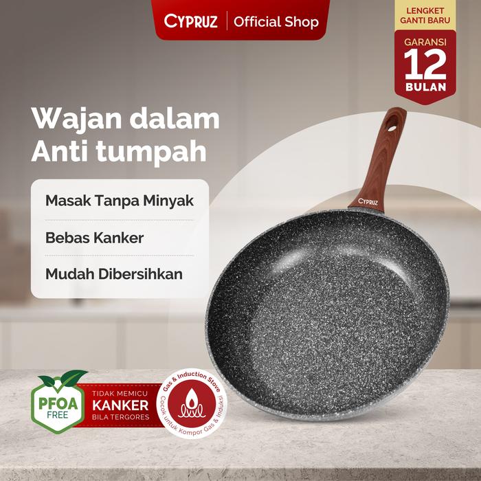 Terlaris [SPECIAL LIVE] Cypruz Wajan Penggorengan Anti Lengket Fry Pan Induksi Marble Series - 22 cm Elegan