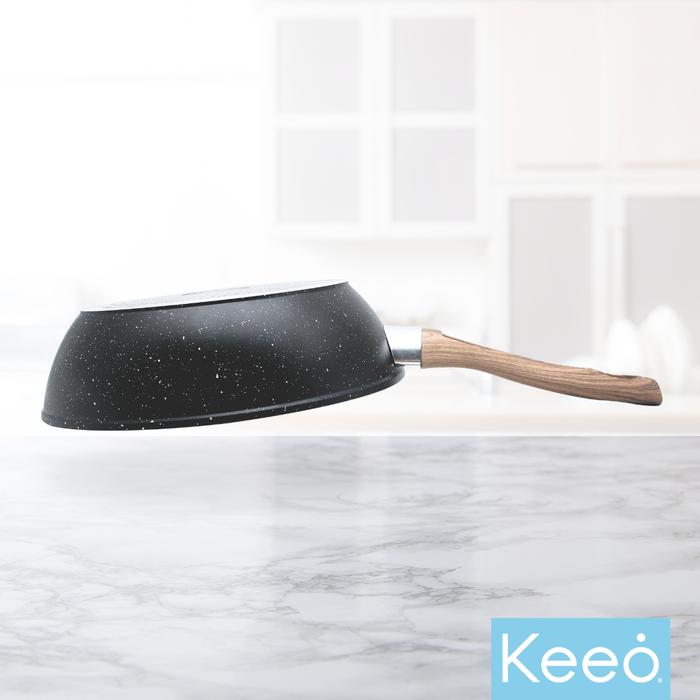 Promo Keeo 28 cm Wajan Wok Teflon Penggorengan Deep Frypan Anti Lengket Marble Granit Hitam Keren