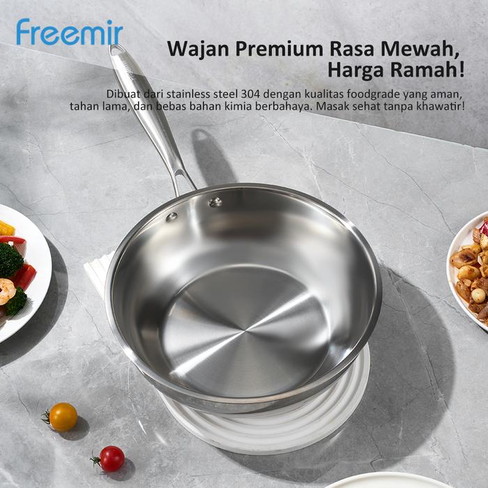 Murah [NEW] freemir Wajan Stainless 28 Cm Wajan Anti Lengket Panci Penggorengan Masak Sehat Kitchenware Premium Elegan