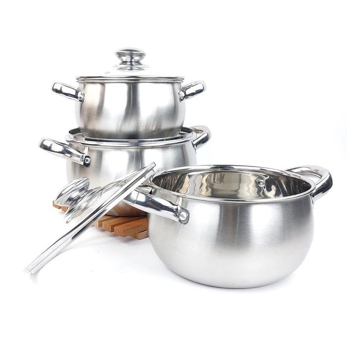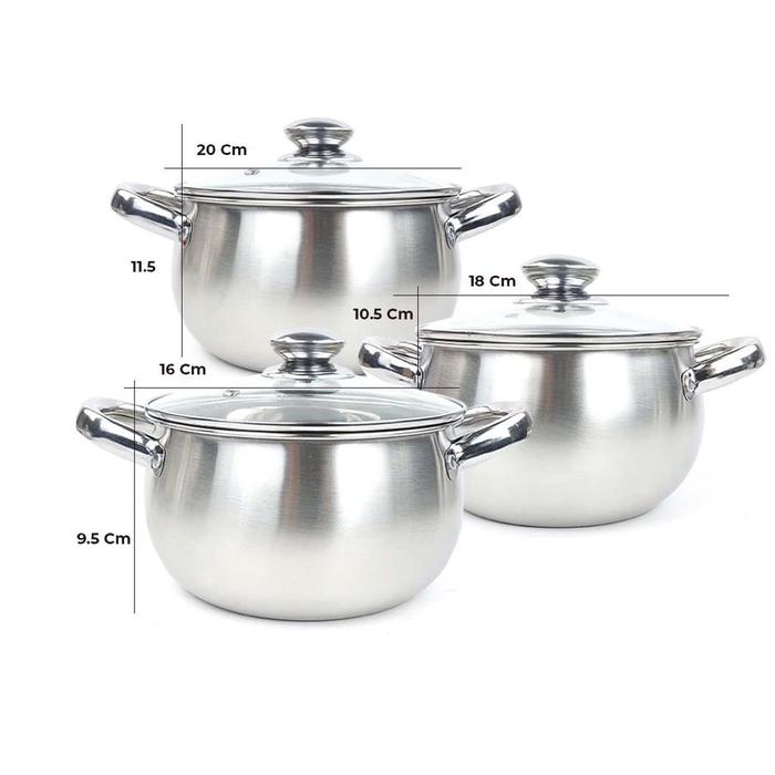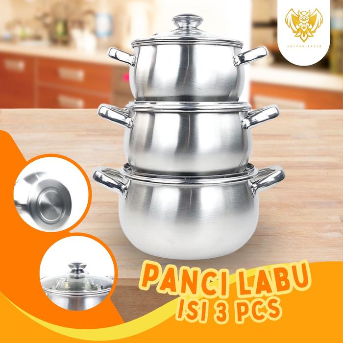 Promo Panci L4bu 3 Pcs Stainless Steel Panci Rebus Tutup Kaca Peralatan Set - 1 SET Elegan