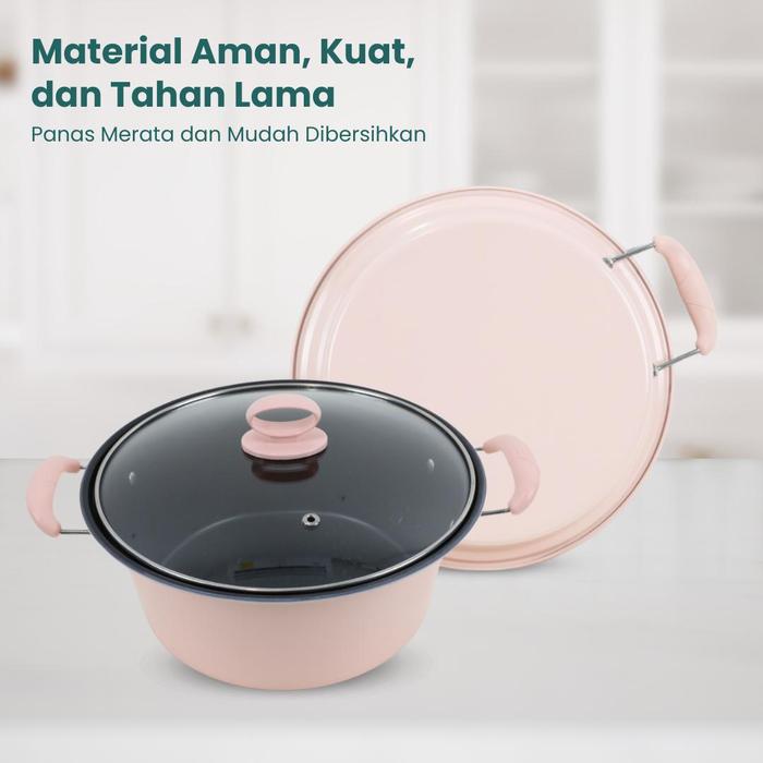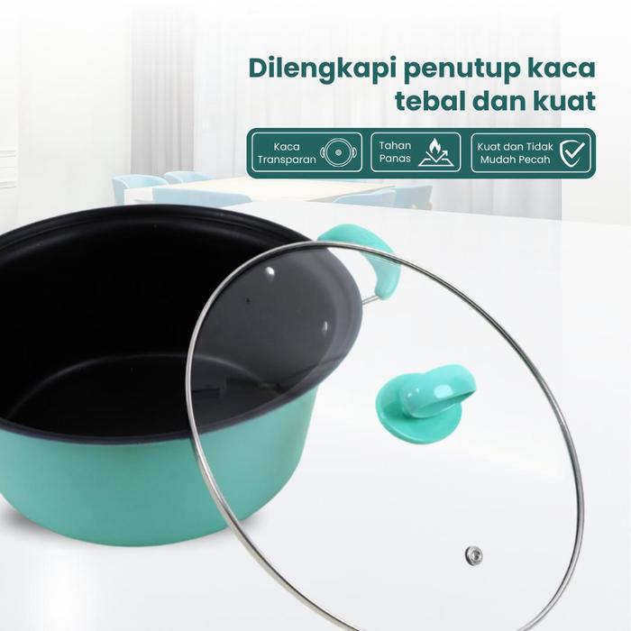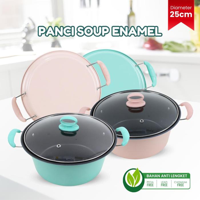 Promo Panci Sup Enamel 25CM Serbaguna Anti Lengket Panci Sop Panci Sayur - HIJAU Keren