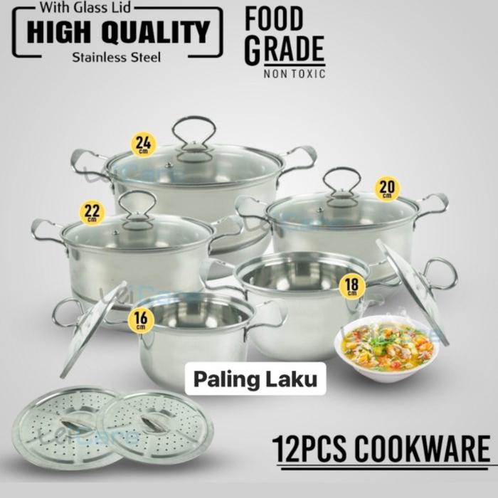 Terlaris Panci Set High Pot Stainless Steel 12 pcs - - - Keren