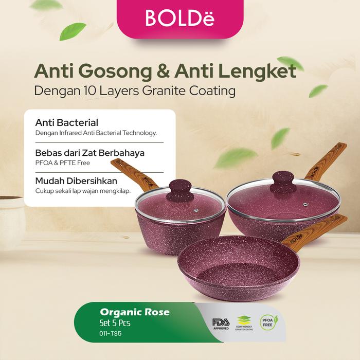 Murah Organic Rose Pan Set 5pcs - Pan Anti Lengket Granite Coating Elegan