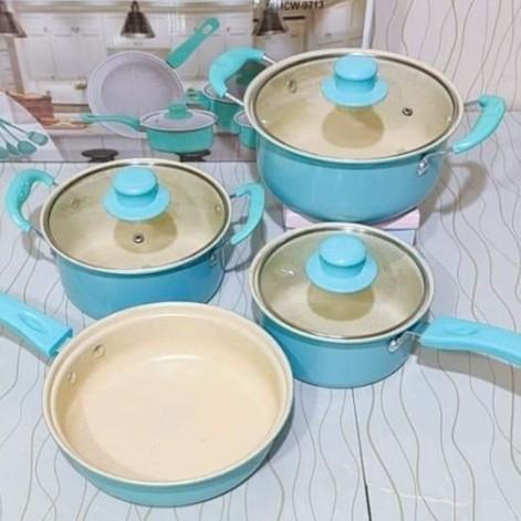 Terlaris Set Alat Masak Panci Set 13 Pcs Cookware Set Panci Kitchenware - HIJAU Keren