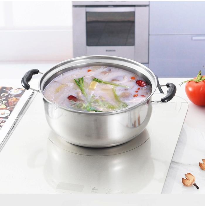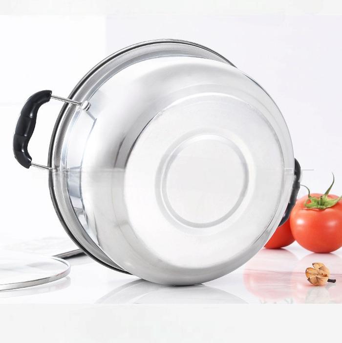 Murah Panci Susu Kuping Dutch Oven Tutup Kaca Stainless Steel tebal Ukuran 16-24cm - 16 cm Keren