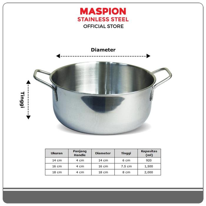 Promo Maspion Maxim Panci Ramen & Sukiyaki Stainless Steel - Ramen 14 cm Elegan