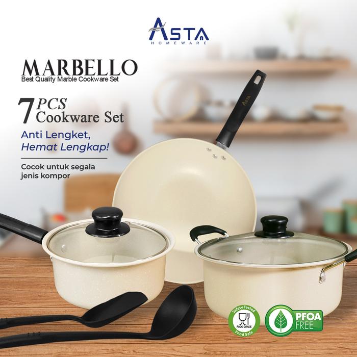 Terlaris ASTA Panci Set Marbello Cream Lengkap 7 Pcs Anti Lengket - Hitam Elegan
