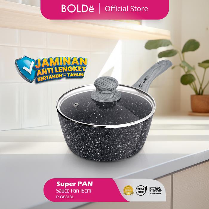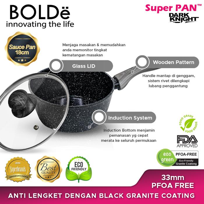 Murah BOLDe Sauce Pan 18 cm Lid Glass Black ( Alat Masak) - Hitam Keren