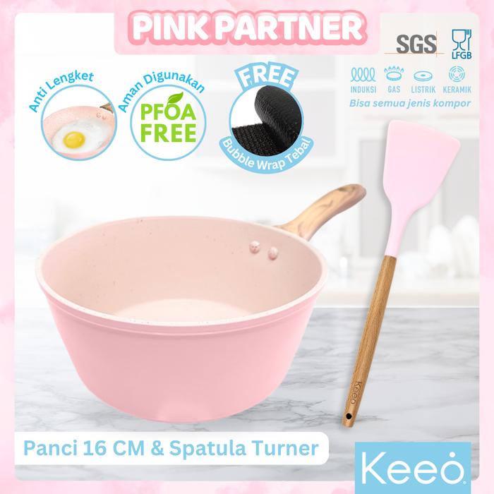 Promo PROMO Keeo 16 cm Panci Sauce Pan Anti Lengket dan Sutil Spatula Turner Pink Elegan