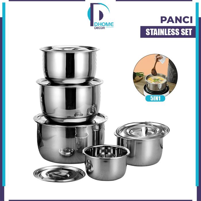 Murah [] DH C1232 Panci Stainless 5IN1 Stock Pot Makanan Sayuran Set Tutup Praktis - SILVER - 5IN1 Keren