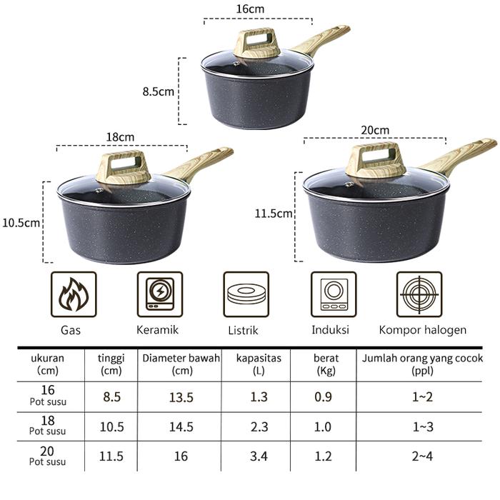 Murah GiPP Milk Pot Panci Susu 16/18CM Anti Lengket - gray 16cm Elegan
