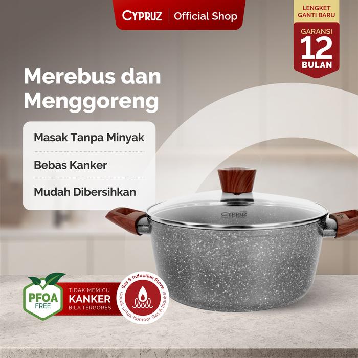 Promo [] Cypruz Casserole Pan Panci Grey Marble Series Panci Anti Lengket Dengan Tutup Kitchenware - 20 cm Elegan