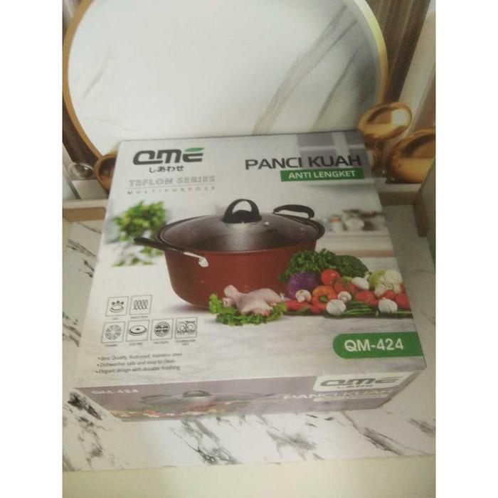 Promo PANCI SUP ENAMEL ANTI LENGKET 24 CM QME PANCI KUAH ENAMEL ANTI LENGKET WARNA + TUTUP KACA QM424 Elegan