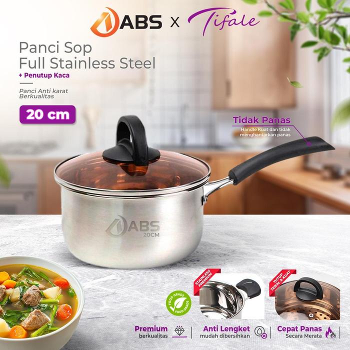 Terlaris [TIFALE X ABS] 20CM Panci Kuah Anti Lengket Stainless Dengan Gagang glass kaca 18CM 20CM - 20CM Keren