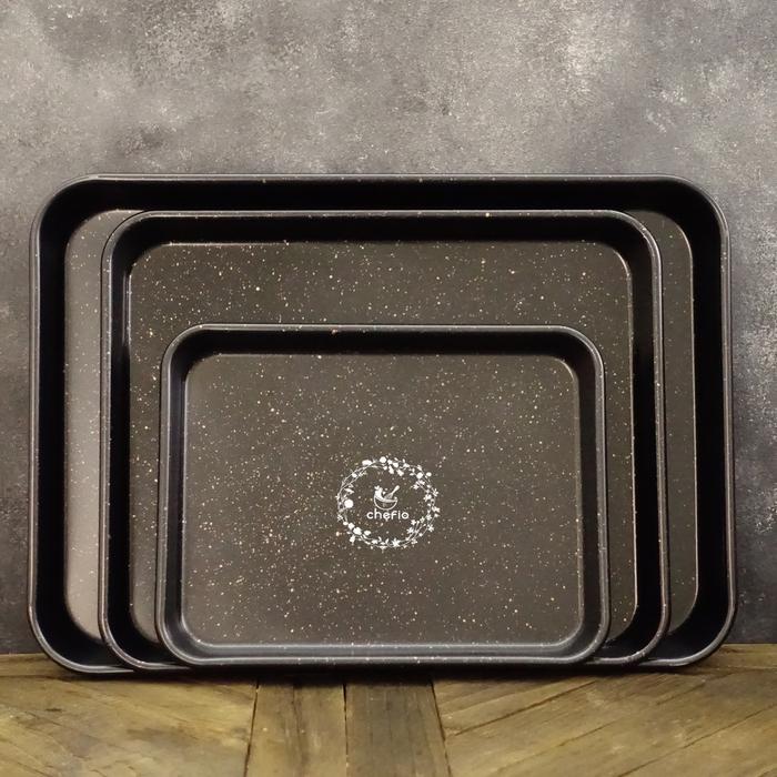 Promo Chefio Loyang Persegi Panjang Black Marble / Baking Tray Kue Kering - 22 cm Elegan
