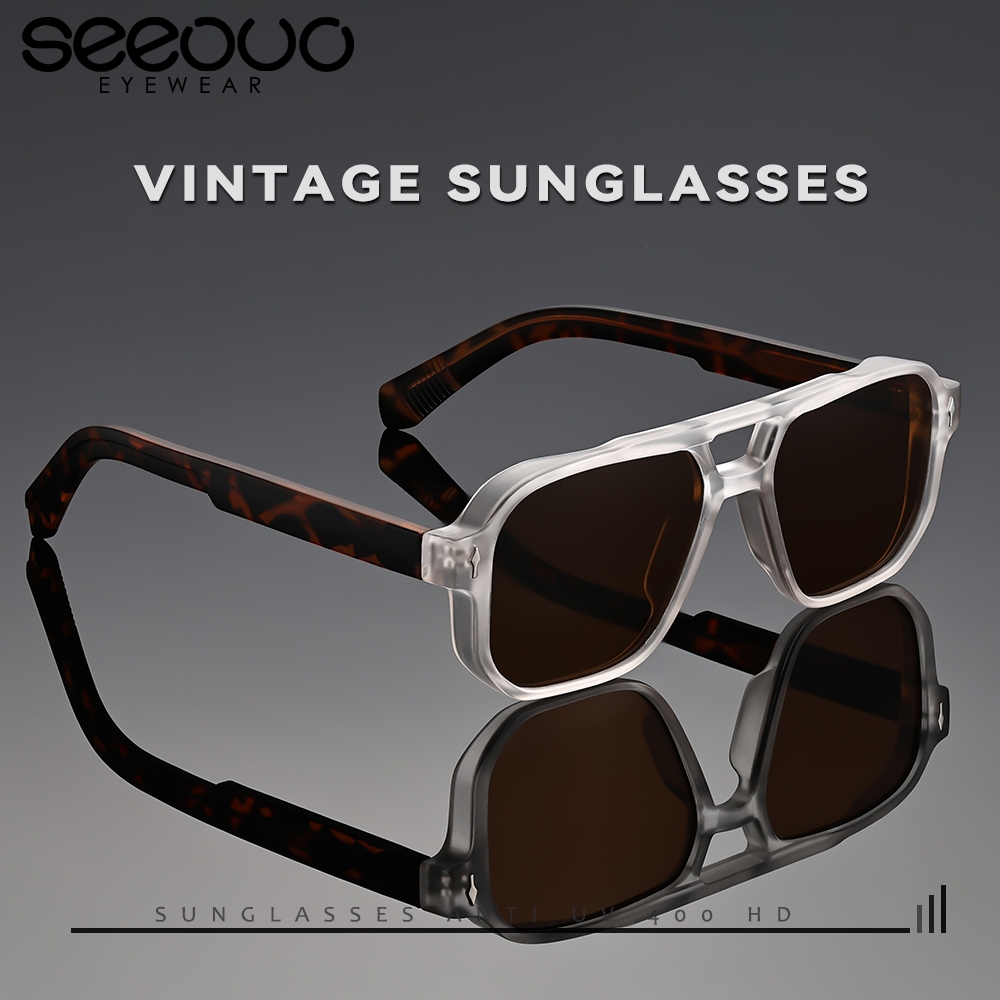 Seeouo Sunglasses Anti UV 400 Anti Silau Model Aviator Kotak TR90+Alloy Kokoh Bold Pria Wanita Kekinian Kacamata Hitam F