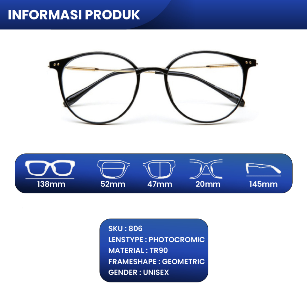 IOOI Eyewear - Kacamata Kotak TR 90 Lensa Minus Anti Radiasi Blueray Photocromic Pria Wanita S11766