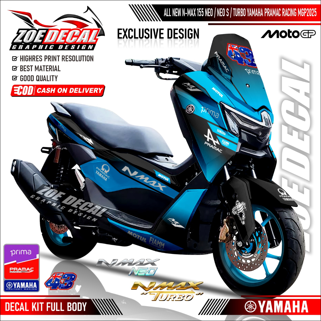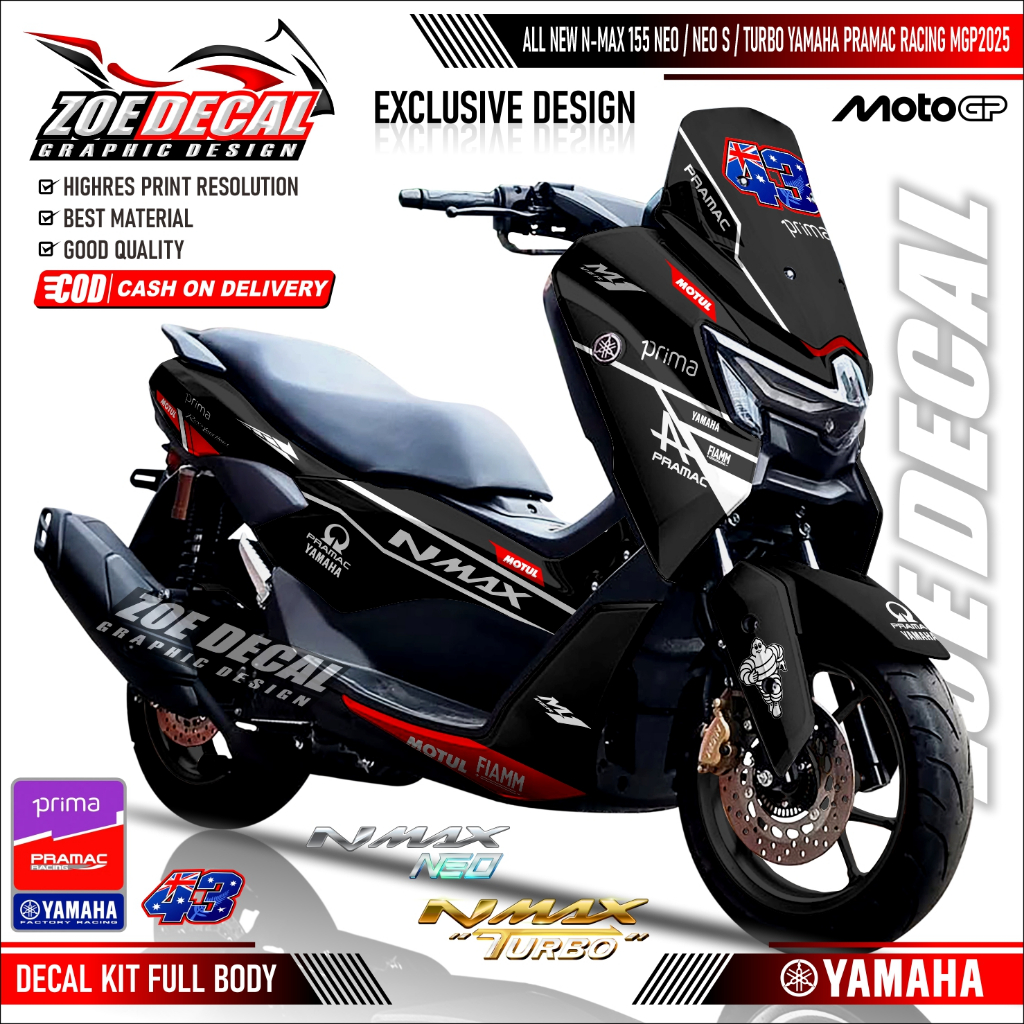 Terbaru Decal Stiker Full Body Yamaha All New NMAX TURBO / NEO / NEO S Motif / Livery PRAMAC RACING JACK MILLER MOTOGP 2