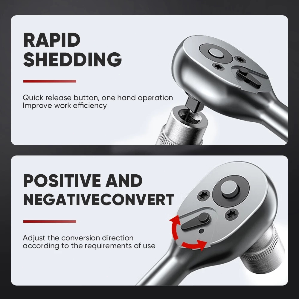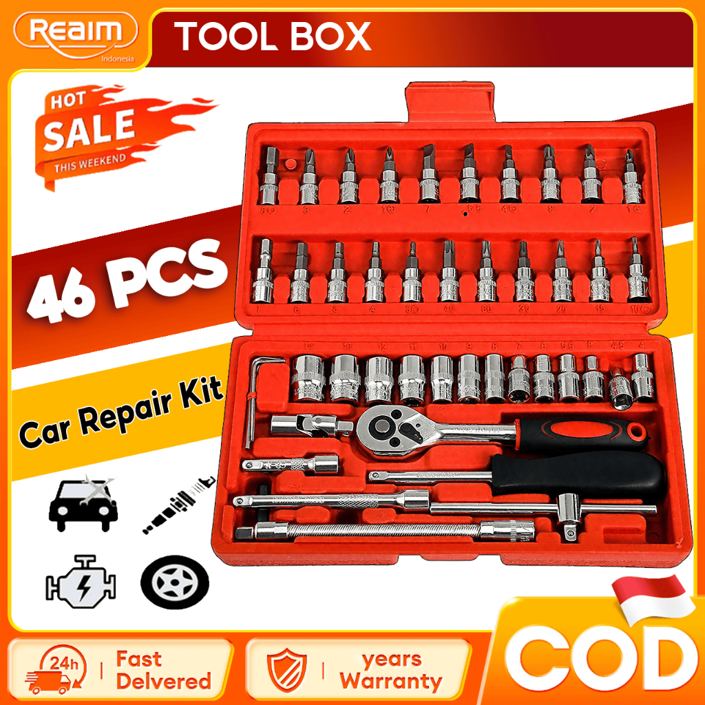 Reaim impact wrench 46 - Piece Tool Kit Set - 1/4 Socket + Obeng Set, Kunci Set Lengkap Kunci Shock Included, Alat Kunci