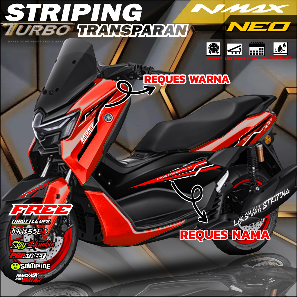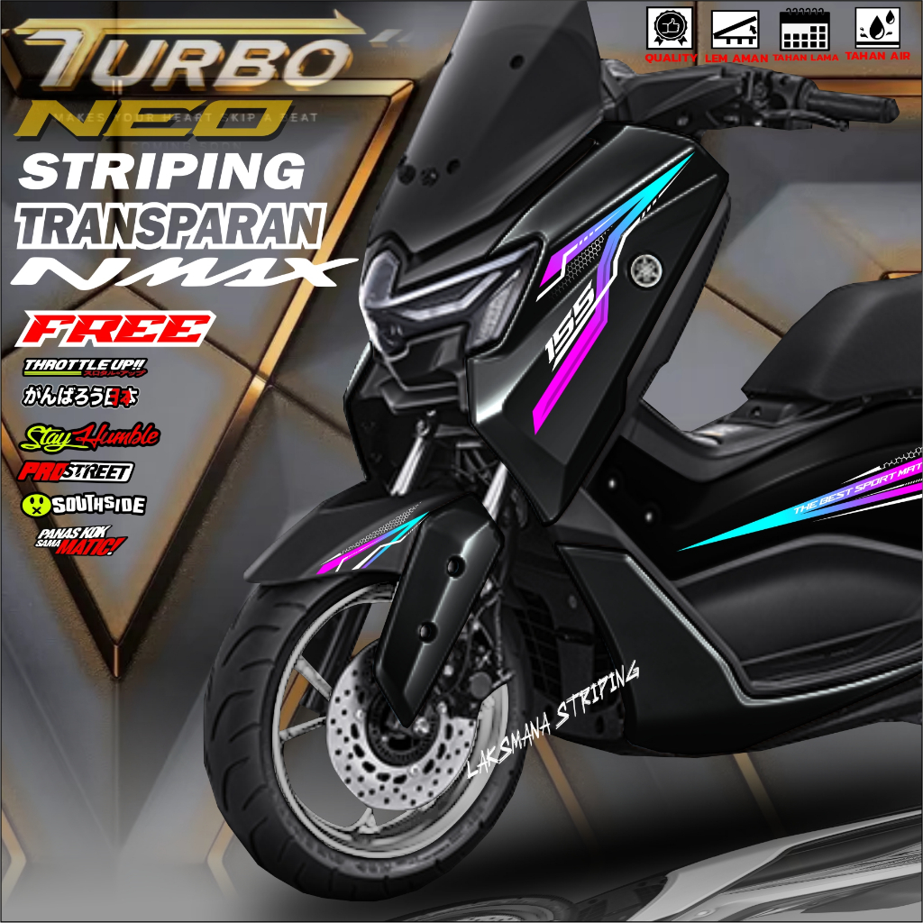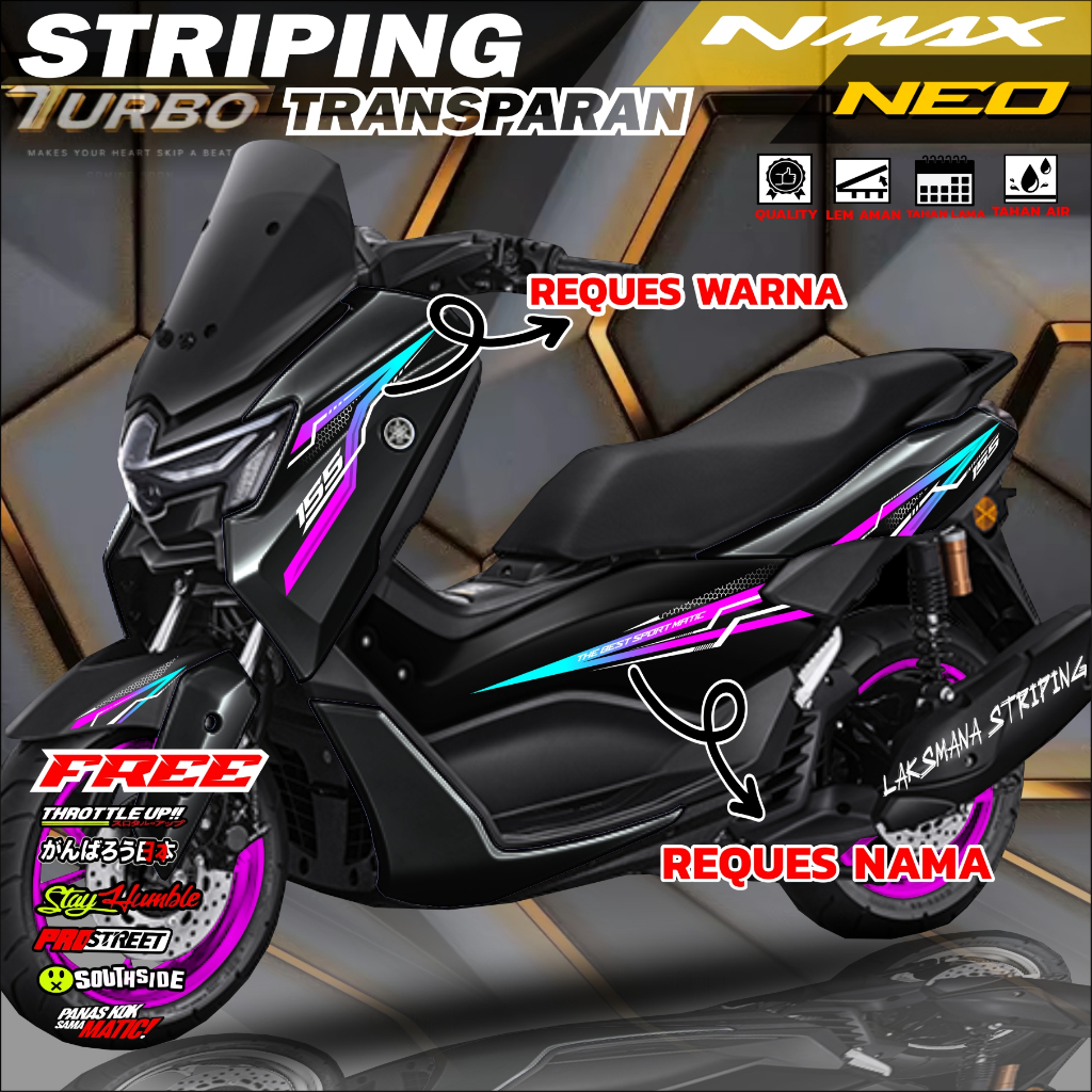 Striping NMAX NEO TURBO 155 Stiker TRansparan YAMAHA NMAX Fariasi Stiker Motor bisa reques warna nama