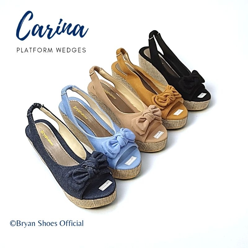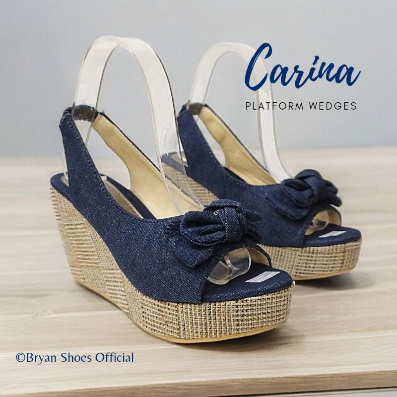 Carina Platform Wedges Pesta – Sandal Wedges Wanita Elegan Hak 9cm, Ukuran 36-40 Biru Navy