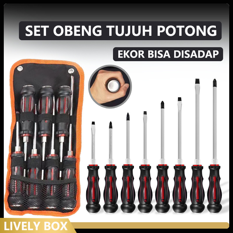 Obeng Set 7Pcs/Obeng Set Lengkap Dengan Kepala Obeng Magnet Screwdriver High Hardness
