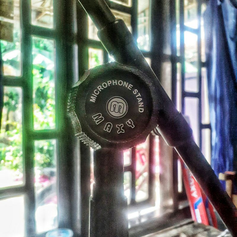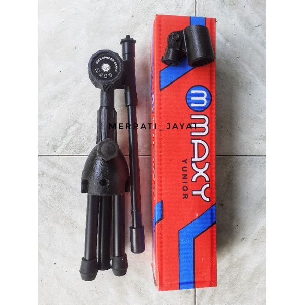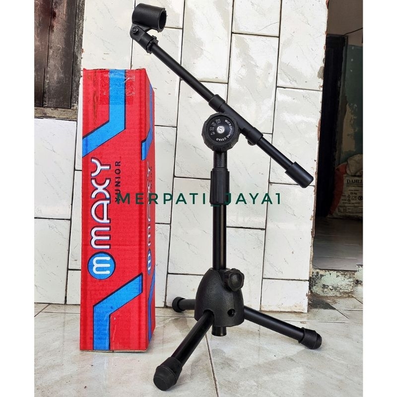 Stand mic / tiang microphone maxy pendek duduk besi Tebal plus holder/catok mic