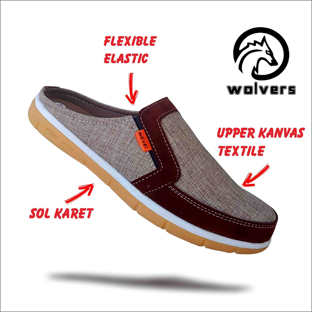 WOLVERS Sepatu Kasual Pria Slip on Slop Bustong Anti Selip Sol Karet