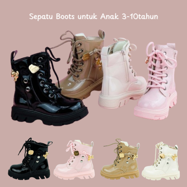 SHB469 Untuk Anak (3-10 tahun) Sepatu boots anak perempuan casual trendy import bahan high quality ukuran 26-36