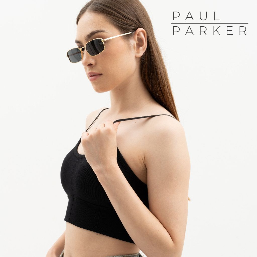 Paul Parker Slim Square TR90 Black Sunglasses-Polarized Tech UV 400-Cocok Wajah Oval, Bulat, Hati