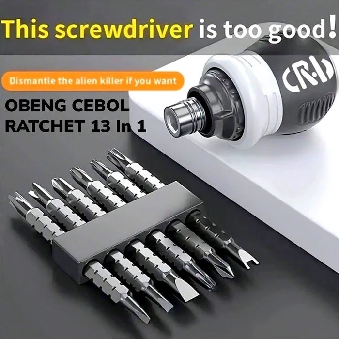 Obeng CRV Set 13in1 Obeng Cebol BB buntek karet Dua Arah cebol mini Multifunction Screwdriverset