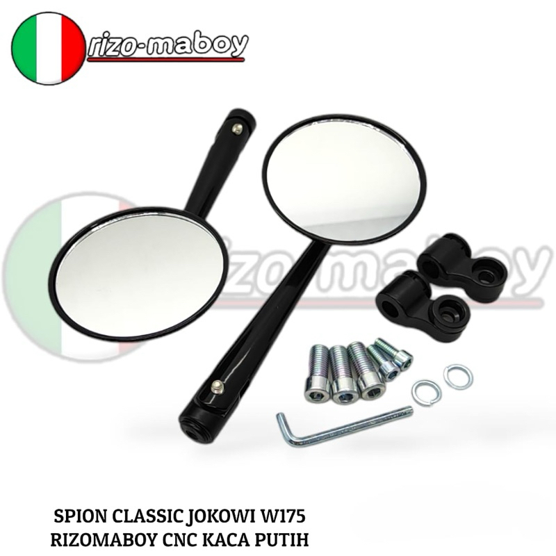 Rizo-maboy Racing - Spion Bulat Classic CNC Rizo-maboy Spion Clasik Universal Kaca Putih Dan Biru Japstyle Kaca Datar