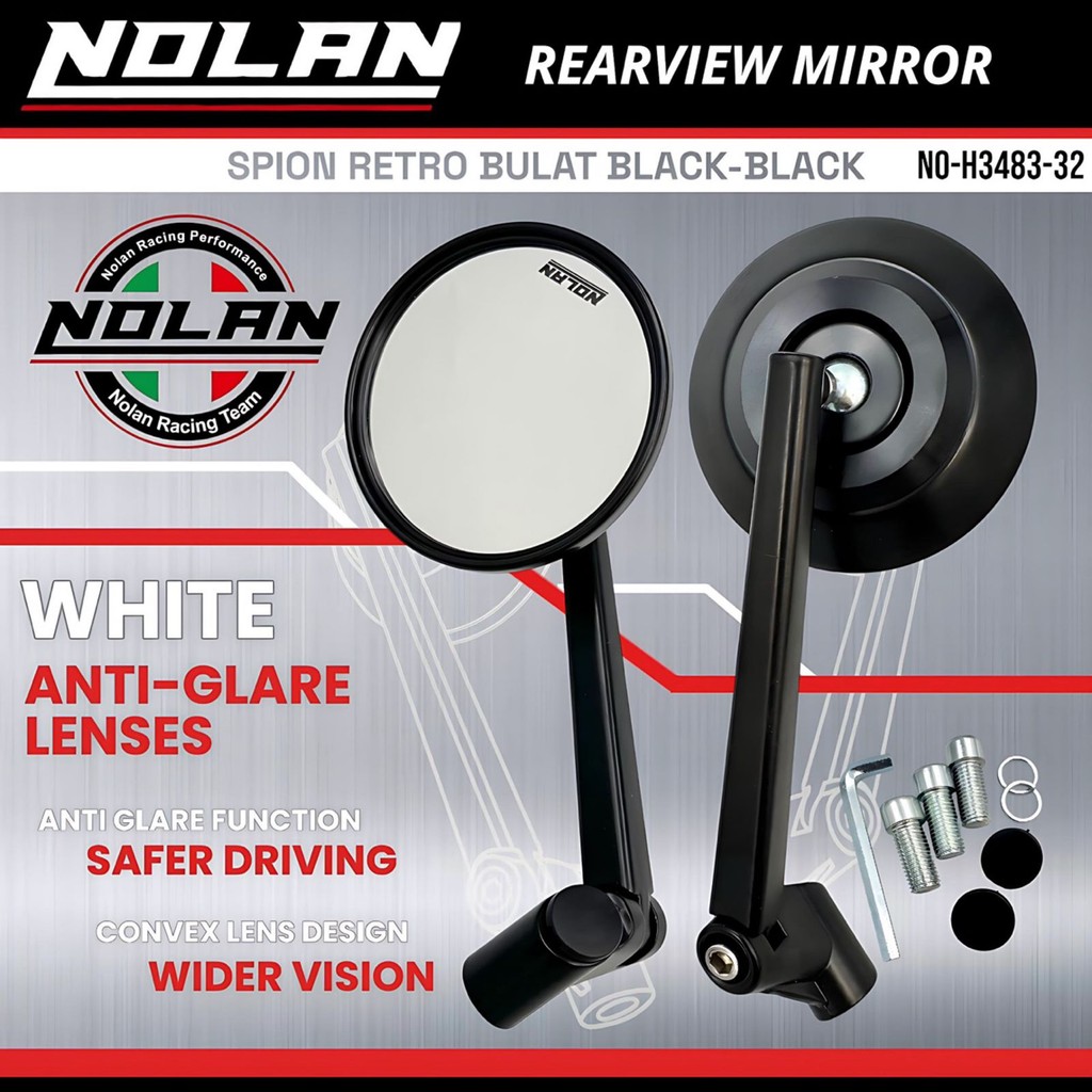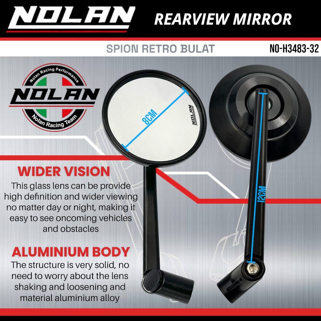 NOLAN Spion Retro Bulat H3483-32 Kaca Putih Bahan Full Aluminium Alloy Universal Motor