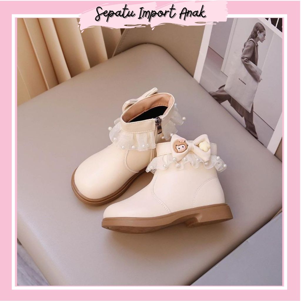 Sepatu boot anak perempuan motif pita size 26-33