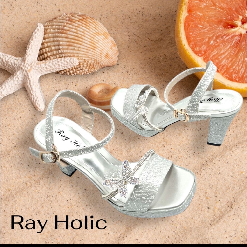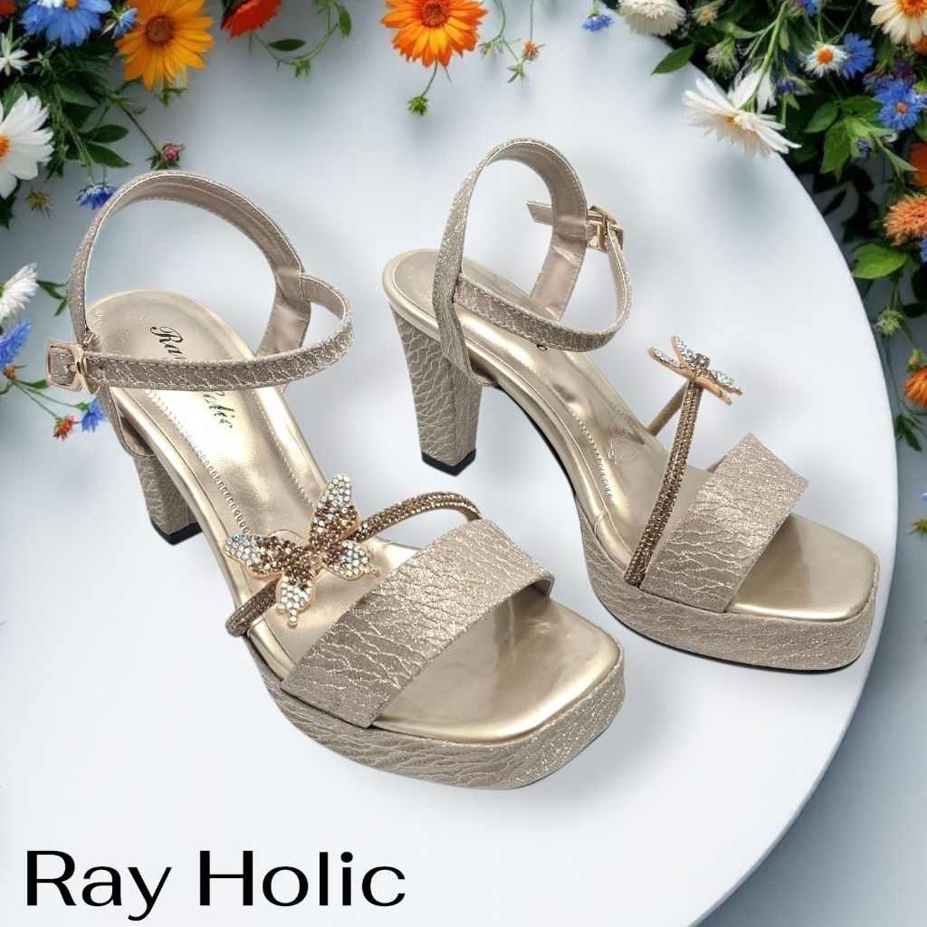 Sandal Tali Heels Mutiara Kupu-Kupu Kekinian Hak 9cm Rayholic 901