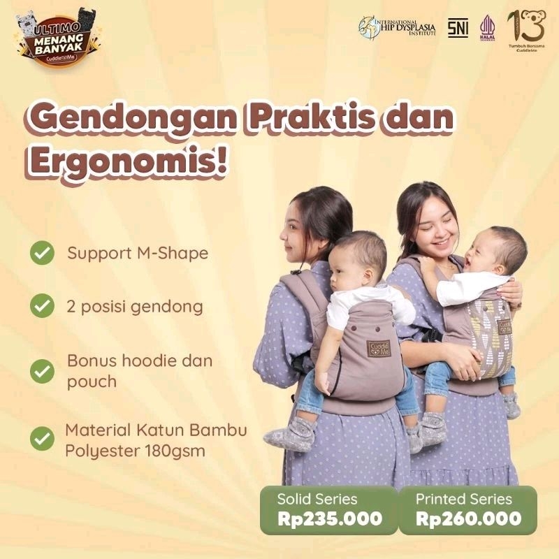 [Mall] Gendongan Bayi Ergonomis Ssc M Shape Praktis Instan Cuddleme Motif Solid Aman