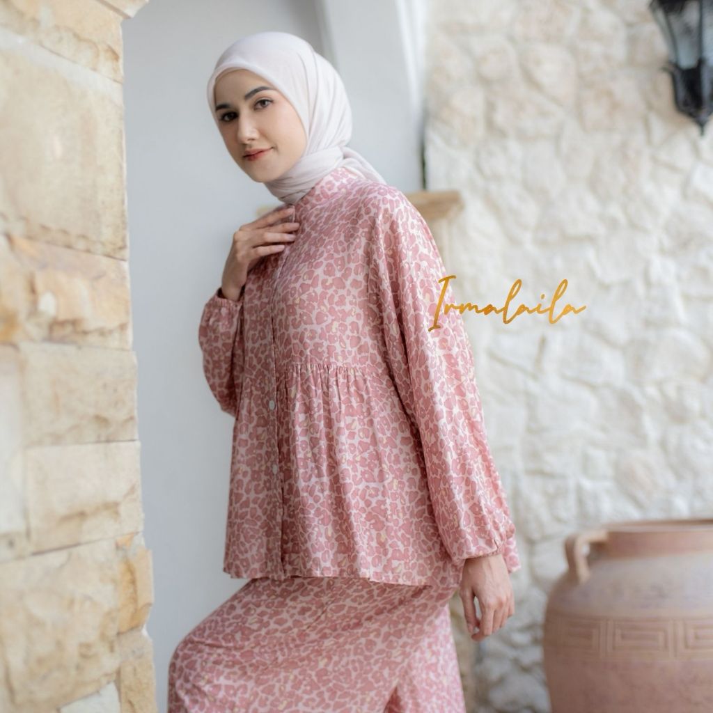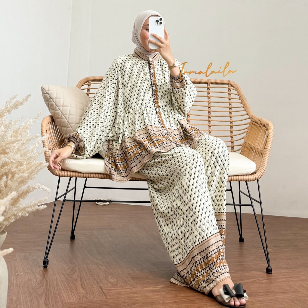 [Mall] Megan One Set Blouse Kancing Tangan Karet Dan Kulot Rayon Wanita Nyaman Cantik Kekinian Busui Friendly