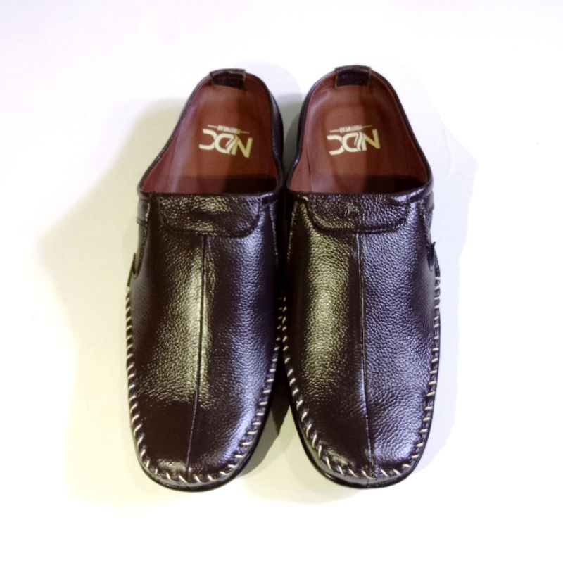 Sepatu pria sandal bustong slop kulit sapi asli berkualitas ( PRODUKSI SENDIRI ) ND_rajut