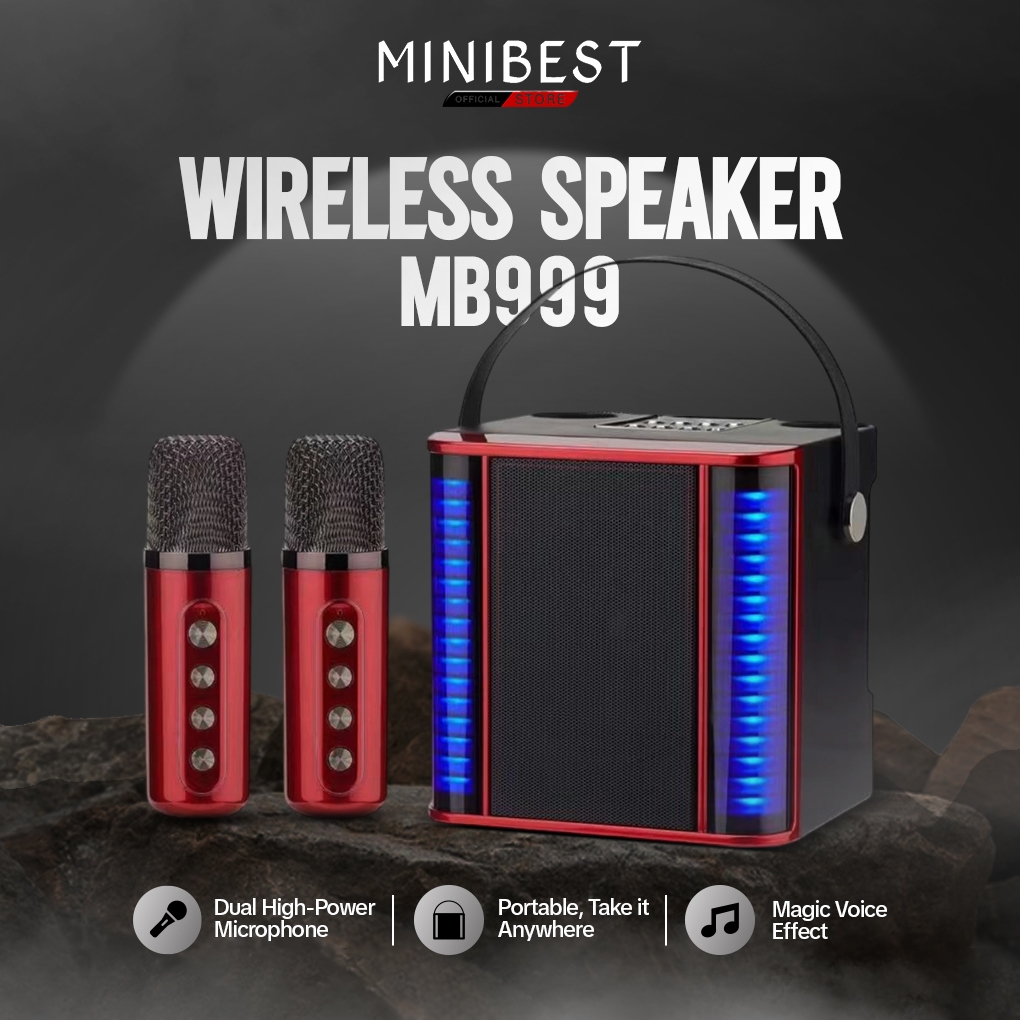 [Star] Minibest Mb999 Speaker Bluetooth Karaoke 2 Mic Wireless Outdoor Family Party Ktv Equipment Wireless Microphone Bluetooth