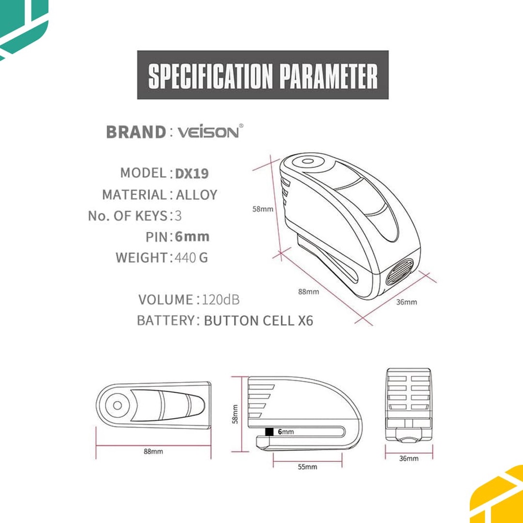 SORU - Gembok Cakram Motor Alarm Anti Maling Kunci Rem Sepeda Motor - Discbrake Lock - VEISON VDX19B
