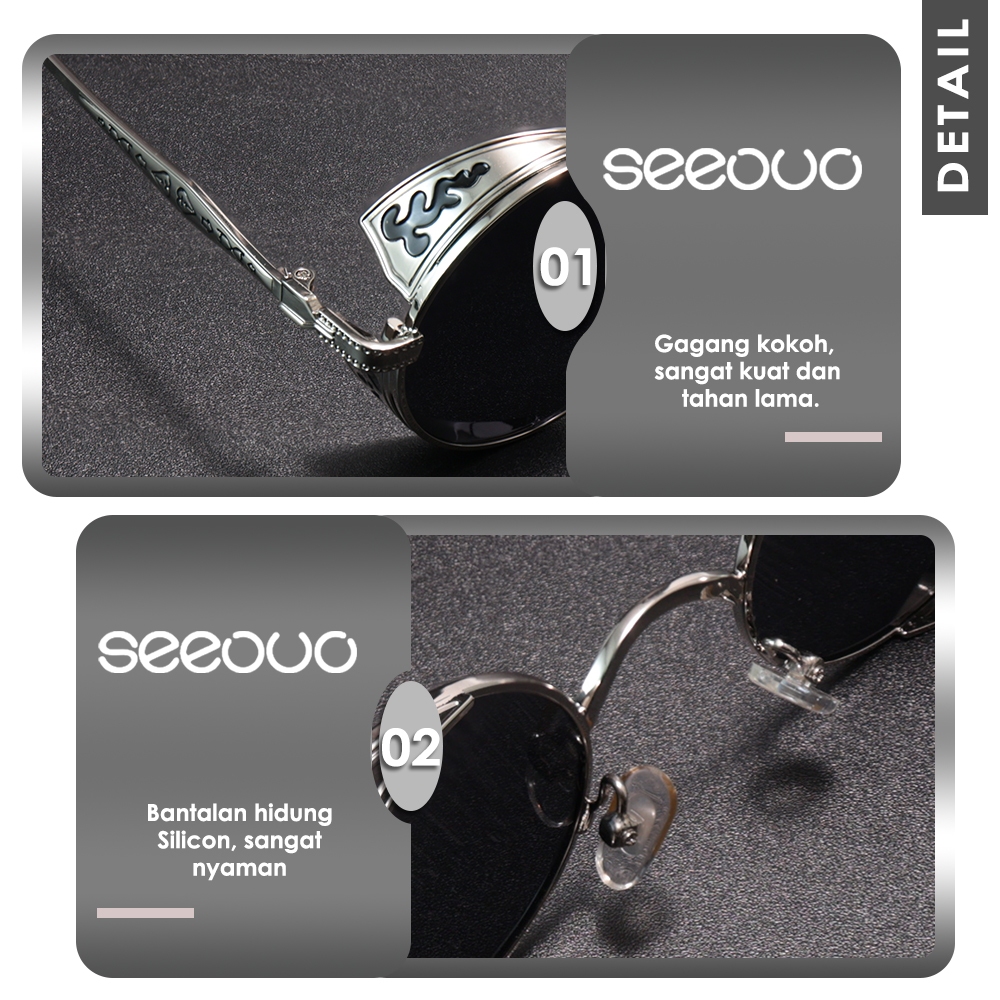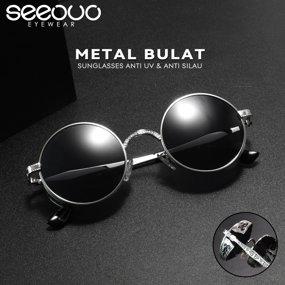 Seeouo Sunglasses Anti UV Model Bulat Retro Metal Kacamata Hitam Anti Silau Kokoh Retro Vintage Pria Wanita Fashionable
