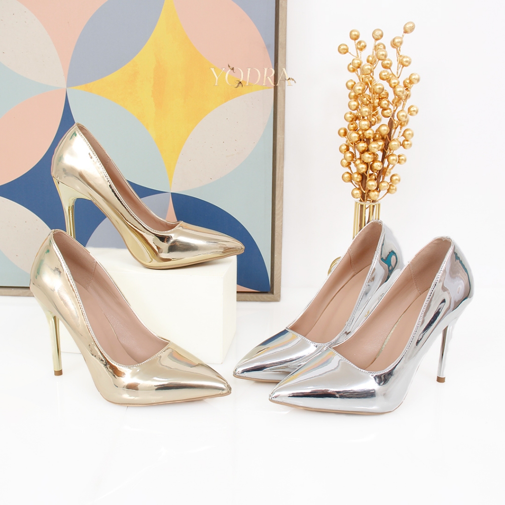 Sepatu Heels Metalic Premium 9cm/ Sepatu Hak Tinggi Kantoran / High Heels Pesta H0012 Real Pict
