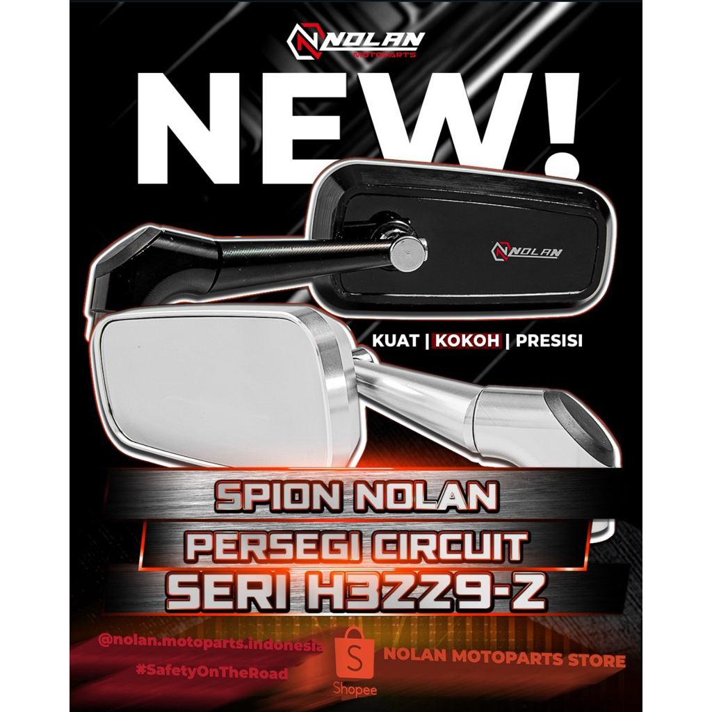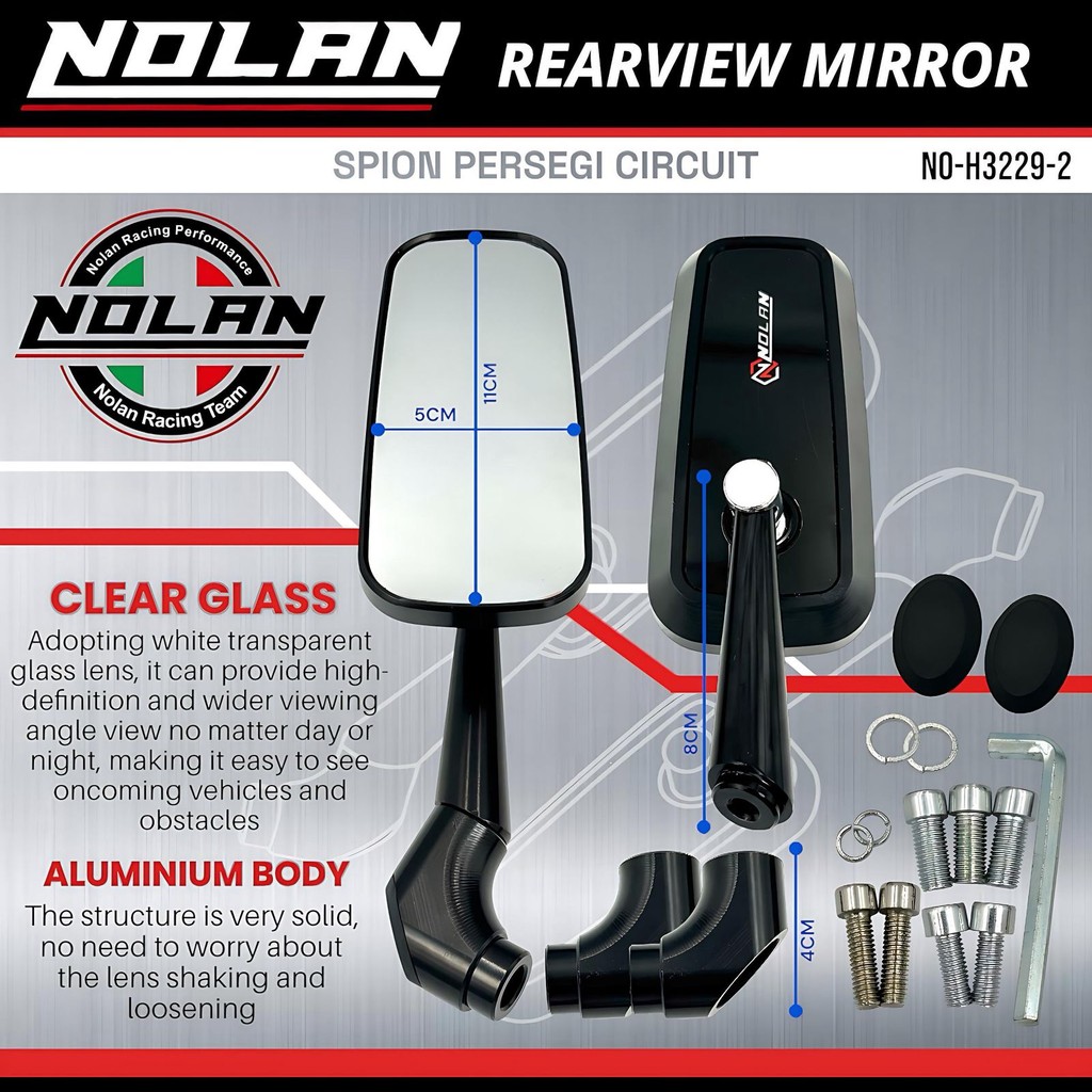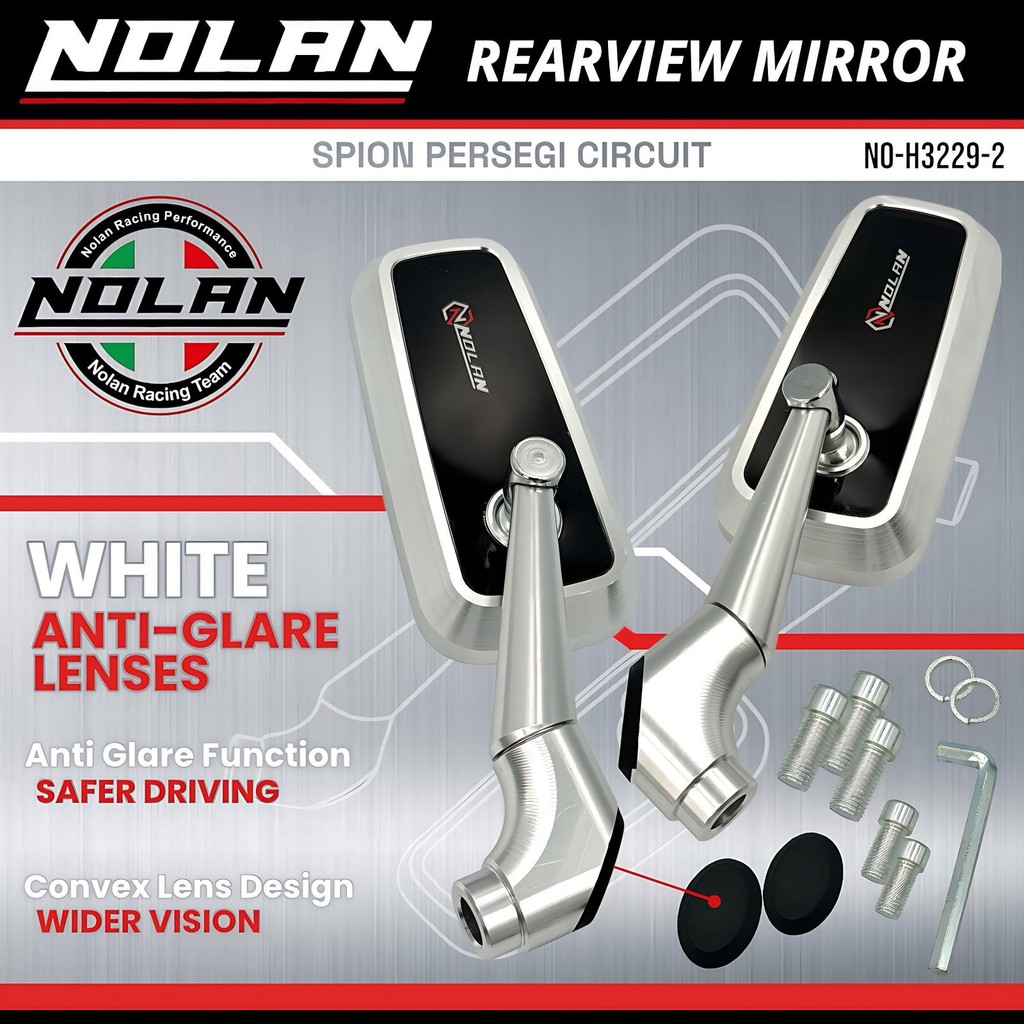 NOLAN Spion Persegi Circuit H3229-2 Kaca Putih Bahan Full Aluminium Alloy Universal Motor
